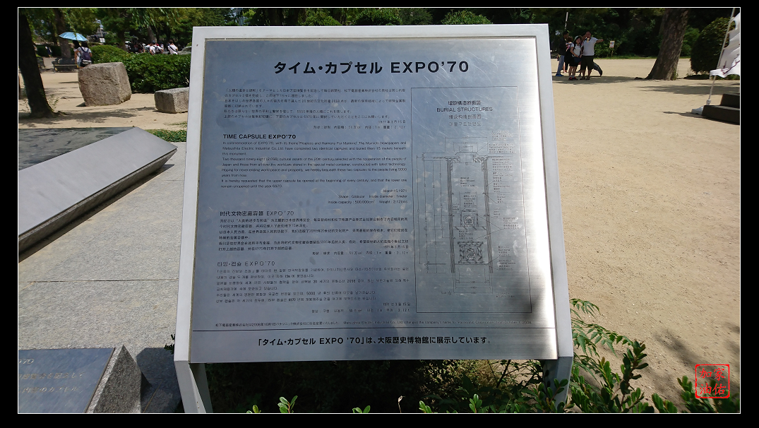 進入內城,可以看到一個時光膠囊,這是在日本萬國博覽會時設置的時間膠囊,內置2098件當時的物,希望可以讓5000年後的人們了解當時的生活狀況。