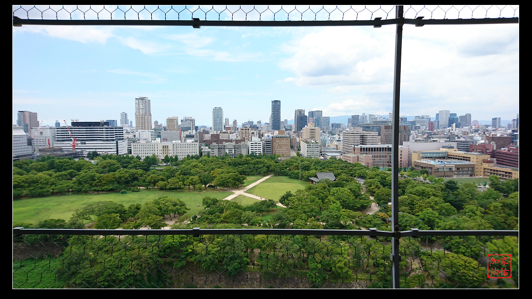 登上頂樓後,可以觀賞四周的風景,由於大阪城公園佔地頗大,天守閣是最高的建築物,所以看四周的風景相當漂亮。