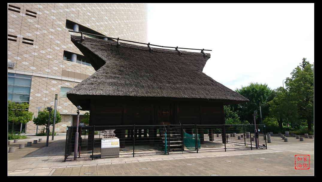 旁邊有展示一個日式古老的建築,上面看起來很像日本節目中曾經介紹是用稻草做成屋頂。