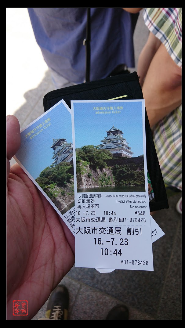 進入天守閣需要買票,因為這次沒有買大阪周遊券,所以拿出今天用的一日券去買票,可以打九折,大人原價600円,打折後540円,小朋友免費。