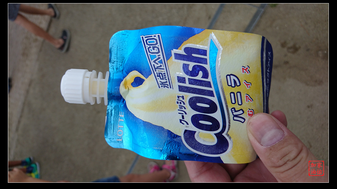 再往前走,天氣真的很熱,販賣機買了這台灣沒看過的冰淇淋,牛奶口味相當濃郁,吃起來意外的好吃,成為這趟旅程中小朋友最愛的冰淇淋!